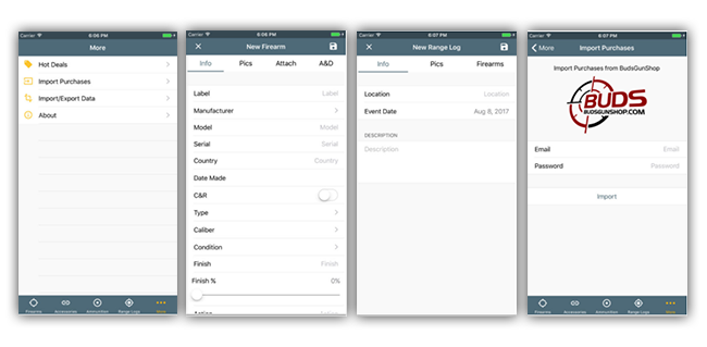 - Import your BudsGunShop.com gun purchases quickly from within app